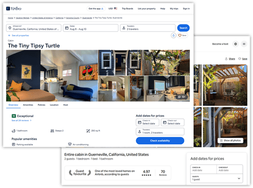 Our Vrbo data scraping services let you analyze vacation rental listings data procured from different areas and types of properties. Our data can show you trends in room prices, occupancy rates, seasonal demand, and listing quality for homes, apartments, villas, or shared spaces.